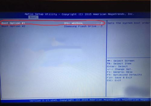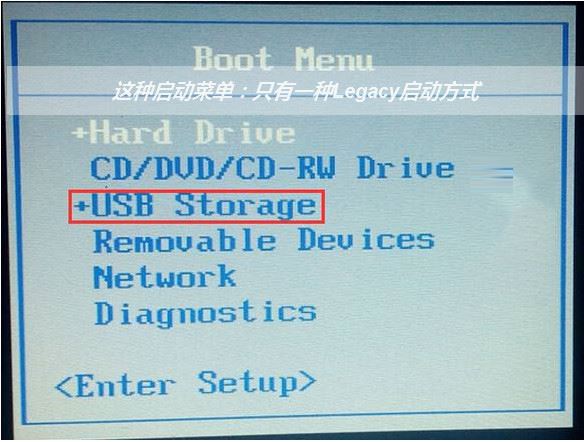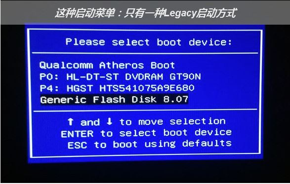 当您的机器(老机器)只支持Legacy时,在这个主板的启动项中就只会出现一个U盘的选项: