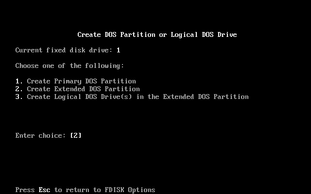刚才在这画面选挥了第1项创建了主分区,现在在这里选择第2项(创建扩展分区),输入“2”后选择第2项,如下图14所示。
