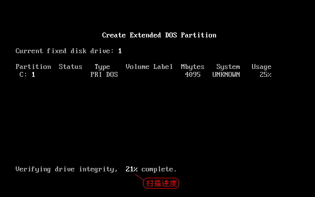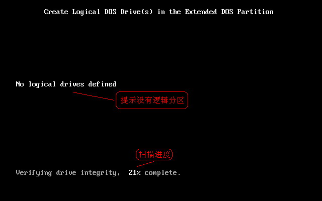 提示没有逻辑分区,并扫描扩展分区容量。完成后出现如下图19所示。