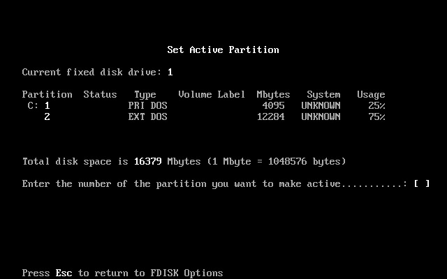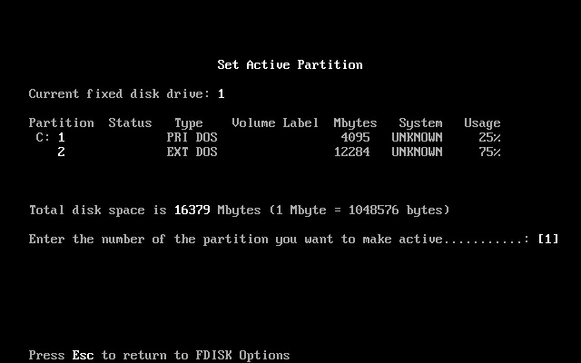 上图中显示出主分区和扩展分区参数。按Esc键后,出现如下图18所示。