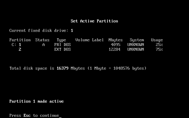 以上图可见C盘已经标注为活动分区。按“Esc”键退回主菜单出现如下图32所示。