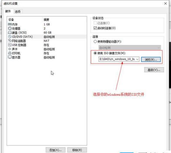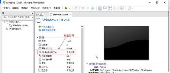 8.新建虚拟机完成后会回到下图所示的VMware workstation界面,双击下图箭头所示的“CD/DVD自动检测”这一项,我们要把准备好的windows11系统添加进来。