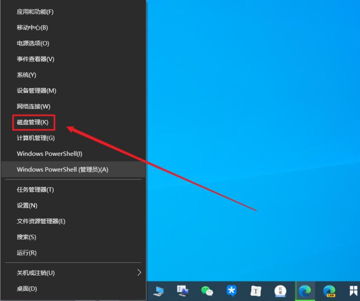 预览版系统ISO文件下载好了之后,我们要给磁盘分区。鼠标右键点击【开始】,点击【磁盘管理】: